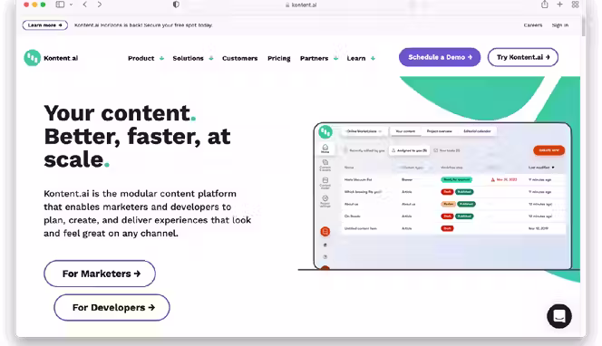 Kontent.ai is a headless CMS with AI writing built in, aimed at teams managing content across multiple channels. It's not just a writing tool—it's a content platform where you create, manage, versions, and distribute content to web, mobile, and other outputs. The AI writing component helps generate variations and fill content gaps, but the real value is the workflow management. Teams collaborate on content, maintain brand consistency, and control publishing across all channels from one place.