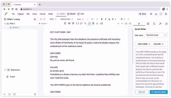 Squibler is an all-in-one writing studio for fiction authors covering outlining, drafting, formatting, and publishing. The AI Story Writer generates chapters and outlines, but Squibler's real value is the project management. You organize scenes, track character stats, manage multiple projects, and format books for self-publishing—all in one tool. The Pro plan ($20/month or $192/year) offers unlimited AI generation, which is generous. Squibler appeals to indie authors who want to handle the full pipeline from rough draft to published book without jumping between tools.