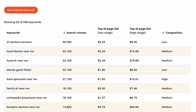 And voila! Wordstream will give you a full list of trending keywords, and keyword volumes, for absolutely free!