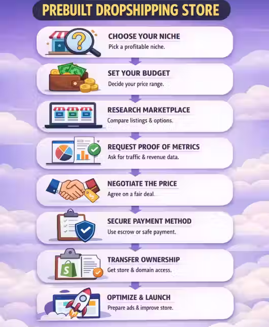 Learn how to buy a prebuilt dropshipping store safely. Discover where to buy, red flags, costs, ROI tips, and how to scale profitably.
