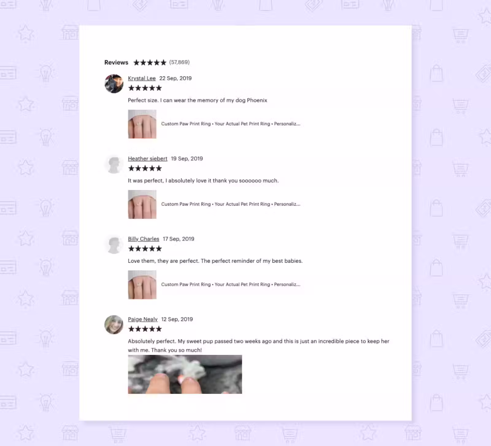 The product pictures do not show the BIGGEST USP of the product. The pictures show a ring, which misses the whole point of the product. When you start advertising, you need to make sure that the ad clearly mentions the custom paw print.