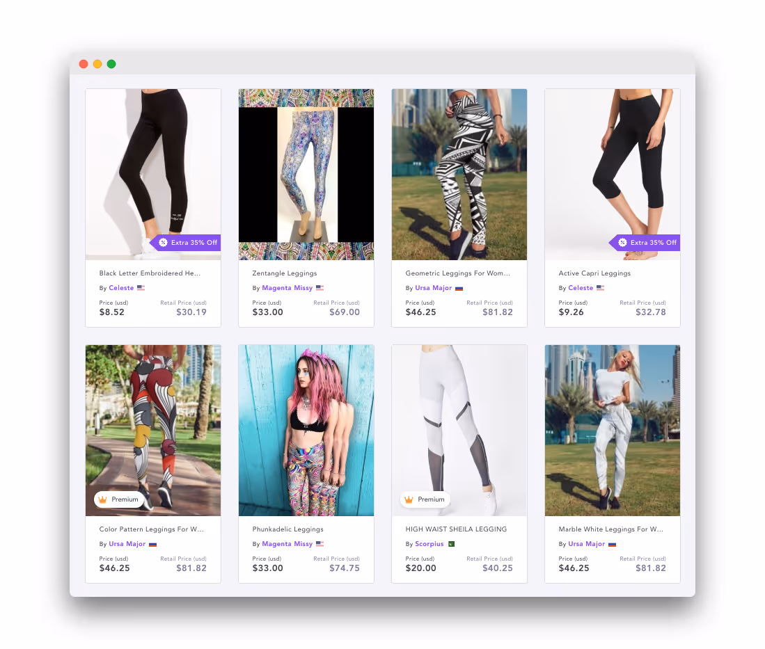 Des leggings toujours utiles pour toutes les occasions figurent une fois de plus en tête du palmarès des vêtements ! Si vous recherchez une idée de produit qui suscite une forte demande tout au long de l'année, les leggings sont un bon produit. Les magasins de dropshipping choisissent souvent de vendre des leggings car il est difficile de se tromper avec ces produits : une grande variété est disponible, les marges bénéficiaires sont excellentes et les gens sont toujours prêts à ajouter un autre legging à leur garde-robe, quelle que soit la saison.