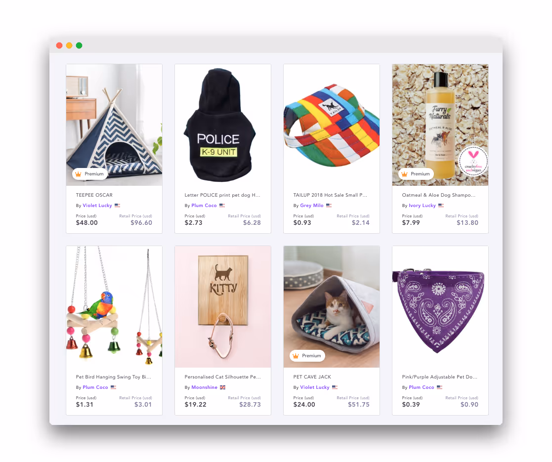 Spocket propose une gamme de produits pour animaux de compagnie parfaits pour votre boutique en ligne :