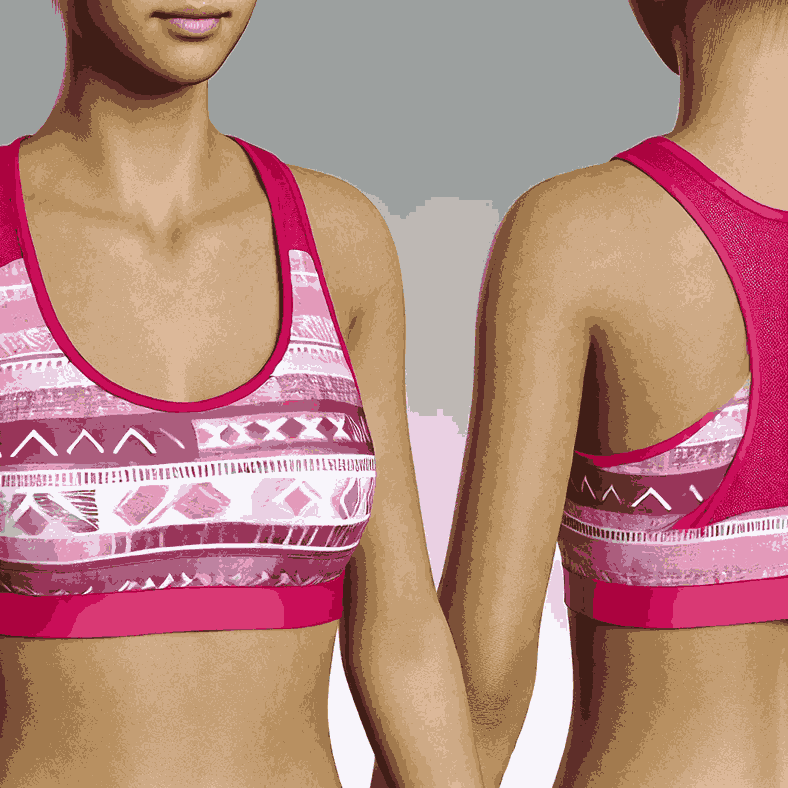 Create personalized all-over print padded sports bras with vibrant graphics and custom artwork. Perfect for activewear brands or personal expression.