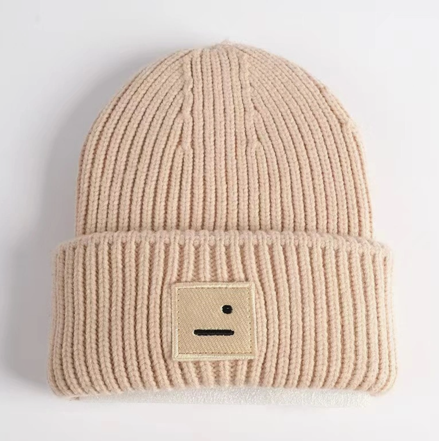 The beanie is made from a soft acrylic blend, providing warmth and comfort.